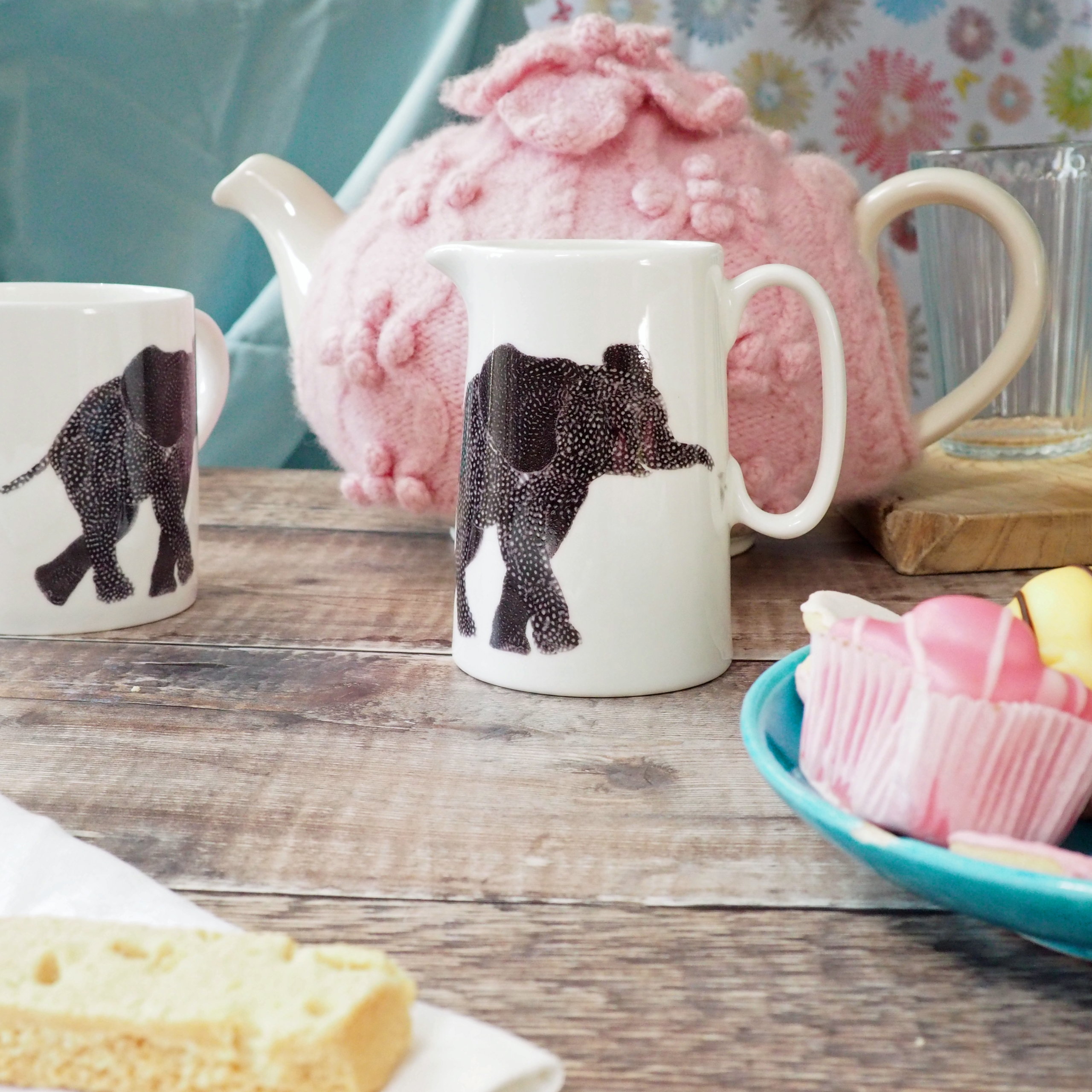 Beautifully finished 1/2 pint fine bone china jug in Chloe’s feather elephant design.