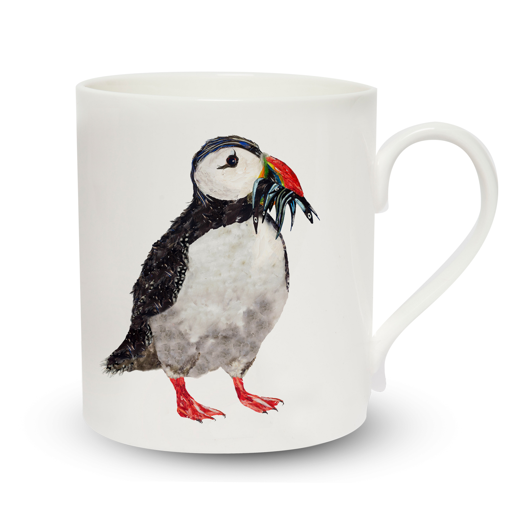 4 Medium ‘Pop’ Mugs from the Scottish Set 1: Bright Highland Cow, Multi Stag, Fat puffin with fish and Scotties