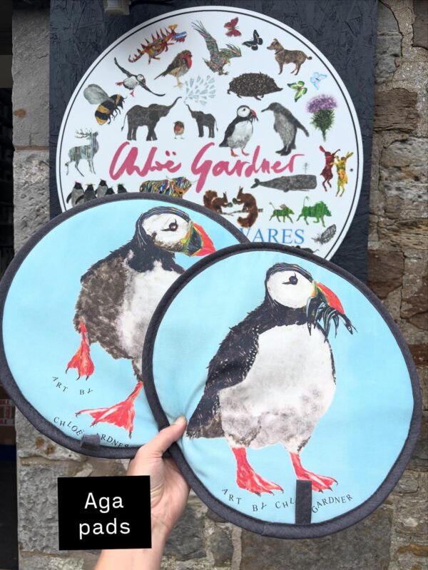 Set of Two Aga Pads. One puffin with fish design and one running puffin design.
