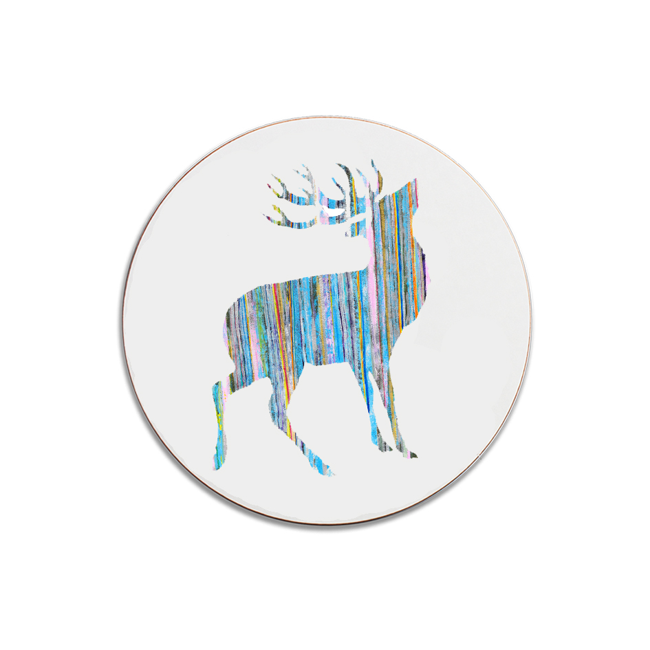 ROUND TABLEMAT – Blue Multi coloured Stripy Stag