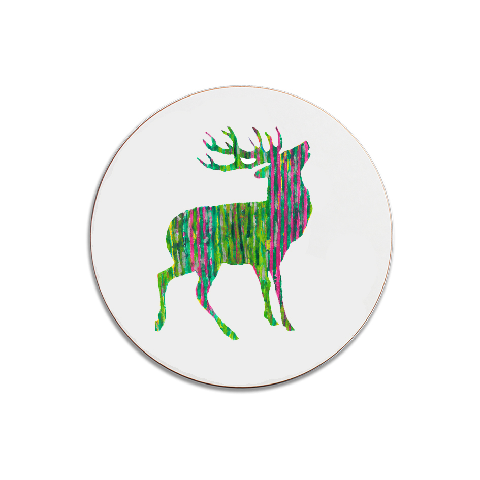 ROUND TABLEMAT – Green and Pink Stag